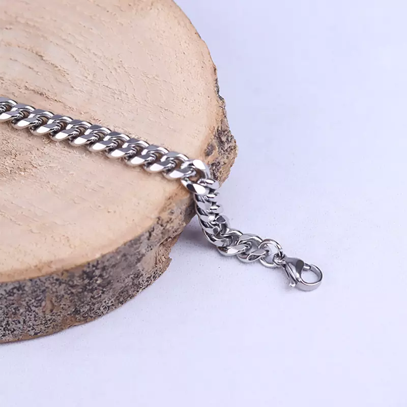 دستبند کارتیر نقره ای استنلس استیل رنگ ثابت و ضد حساسیت است. عرض بند 6 میلیمتر است. این دستبند از مدلهای شیک و جذاب دستبند مردانه استنلس استیل است که هم مورد علاقه آقایان است و هم گاهی توسط خانمهای خاص پسند مورد استفاده قرار میگیرد. دستبند مردانه طرحی ساده و زیبا دارد. این زنجیر کارتیه نقرهای رنگ است. رنگ این دستبند، ثابت است و در اثر استفاده روزانه زیبایی خود را از دست نمیدهد.