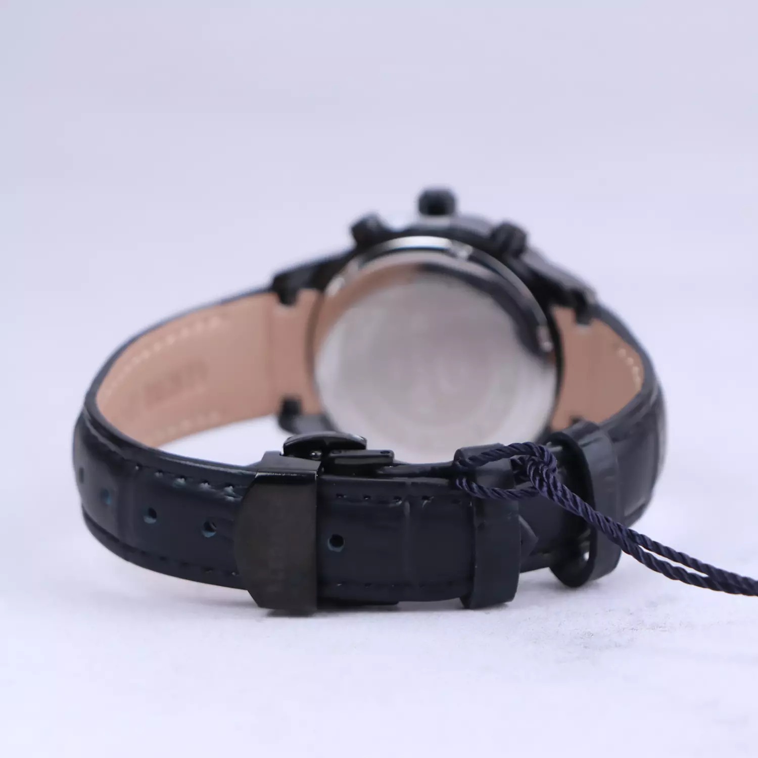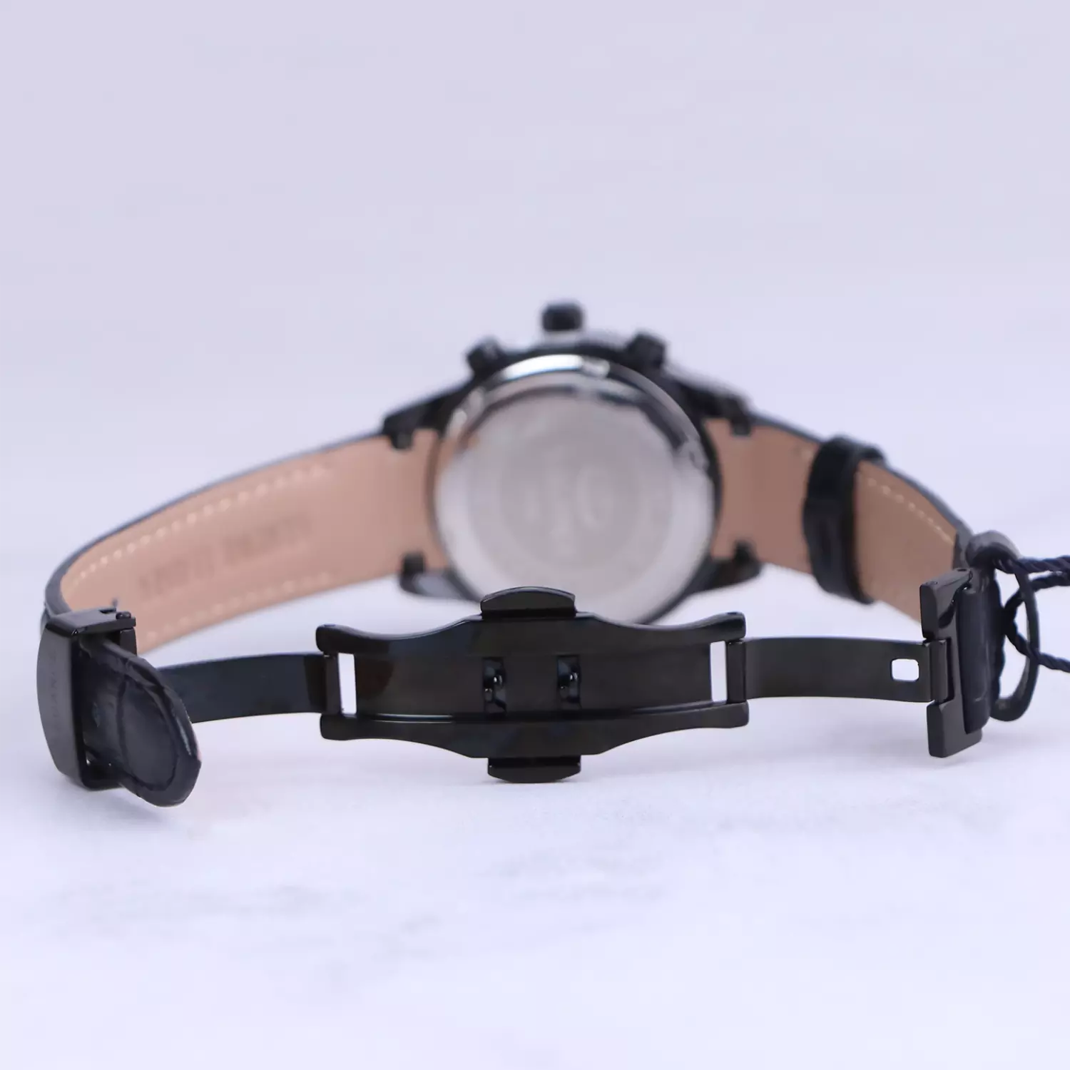 نمای باز قفل ساعت عقربه ای الگانس زنانه بند چرم مشکی قاب مشکی L 1236/7