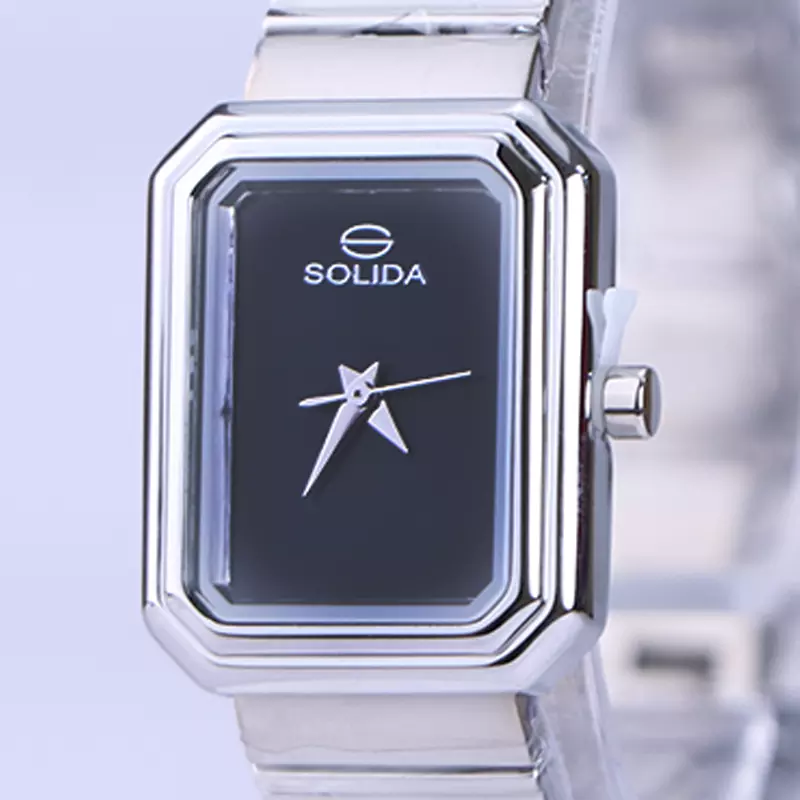 ویژگی ساعت مچی سولیدا فلزی قاب مستطیل صفحه سرمهای