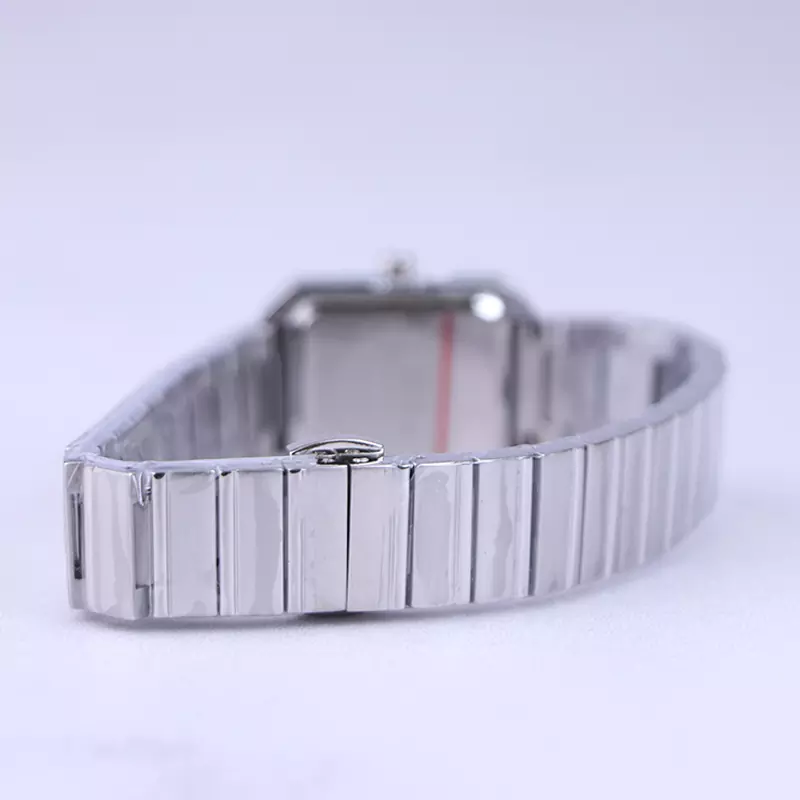 ساعت مچی سولیدا زنانه استیل نقرهای ظاهری کلاسیک و جذاب دارد. این ساعت استیل، رنگ ثابت و ضدحساسیت است. اصلیترین چیزی که در ساعت زنانه سولیدا توجه ما را به خود جلب میکند، قاب مستطیل شکل و صفحهی سرمهای رنگ ساعت است. این ساعت اندکس ندارد و عقربههای آن نقرهای هستند. اگر به درون صفحهی ساعت نگاه کنید، نام برند solida زیر ساعت 12 دیده میشود. در کنار صفحه یک پیچ کوک برای تنظیم زمان وجود دارد. بند ساعت، فلزی و از نوع استیل مرغوب است که باعث تعرق و خارش نمیشود. بند ساعت از بافت یکدستی تشکیل شده که نقرهای است. قفل آن از مدل پروانهای دکمهدار است که از دسته قفلهای محکم و مطمئن است.