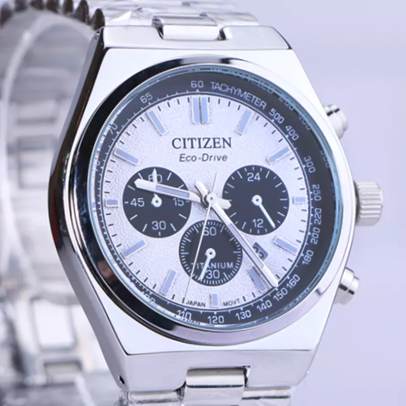 ساعت مچی سیتیزن مردانه فلزی ظاهری مدرن و جذاب دارد. این ساعت استیل نقرهای، رنگ ثابت و ضدحساسیت است. در واقع این ساعت، طرح سه موتوره است و صفحات مشکی کوچکی که میبینید، نمایشی هستند. عقربهها، شبنما و اندکسها خطی و شبنما طراحی شدهاند. اگر به درون صفحه سفید ساعت نگاه کنید، نام برند Citizen زیر ساعت 12 دیده میشود. یک مربع کوچک کنار اعداد 4 و 5 قرار دارد که همان تقویم ساعت است. یک سری عدد دور تا دور قاب ساعت وجود دارد که برای تاچیمتر( سرعت سنج) است. از ساعتهای تاچیمتر میتوانید در تمام محاسباتتان استفاده نمایید. در کنار صفحه یک پیچ کوک برای تنظیم زمان وجود دارد. بند ساعت، فلزی و از نوع استیل مرغوب است که باعث تعرق و خارش نمیشود. این بند از بافت ریز و درشت تشکیل شده که نقرهای رنگ است. قفل ساعت از مدل پروانهای دکمهدار است که از دسته قفلهای محکم و مطمئن است.