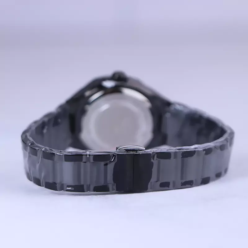 ساعت مچی الگانس زنانه استیل مشکی ظاهری کلاسیک و جذاب دارد. این ساعت استیل، رنگ ثابت و ضدحساسیت است. اصلیترین چیزی که در ساعت زنانه الگانس توجه ما را به خود جلب میکند، قاب گرد و صفحهی مشکی رنگ آینهای ساعت است که ظاهر ساعت را شیک و متفاوت کرده است. عقربهها، مشکی و بدون اندکس است. اگر به درون صفحهی ساعت نگاه کنید، نام برند الگانس زیر ساعت 12 دیده میشود. در کنار صفحه یک پیچ کوک برای تنظیم زمان وجود دارد. بند ساعت، فلزی و از نوع استیل مرغوب است که باعث تعرق و خارش نمیشود. بند ساعت از بافت یکدست تشکیل شده که مشکی رنگ است و قفل آن از مدل پروانهای دکمهدار است که از دسته قفلهای محکم و مطمئن است.