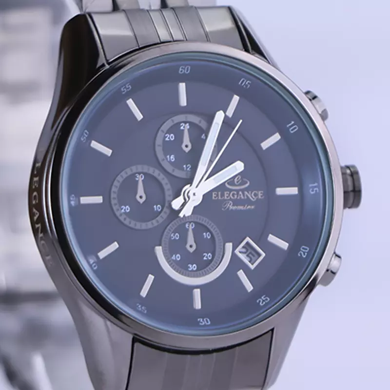 ساعت مچی الگانس زنانه فلزی ظاهری مدرن و جذاب دارد. این ساعت استیل دودی، رنگ ثابت و ضدحساسیت است. در واقع این ساعت، طرح سه موتوره است و صفحات کوچکی که میبینید، نمایشی هستند. عقربهها، شبنما و اندکسها خطی و نقرهای هستند. اگر به درون صفحه دودی رنگ ساعت نگاه کنید، حاشیهی دور آن سرمهای رنگ طراحی شده و نام برند ELEGANCE کنار ساعت 3 دیده میشود. یک مربع کوچک بین عدد 4و 5 قرار دارد که همان تقویم ساعت است. در کنار صفحه یک پیچ کوک برای تنظیم زمان وجود دارد. بند ساعت، فلزی و از نوع استیل مرغوب است که باعث تعرق و خارش نمیشود. طرح این بند از بافت ریز و درشت تشکیل شده که دودی رنگ است. قفل ساعت از مدل پروانه ای دکمهدار است که از دسته قفلهای محکم و مطمئن است.