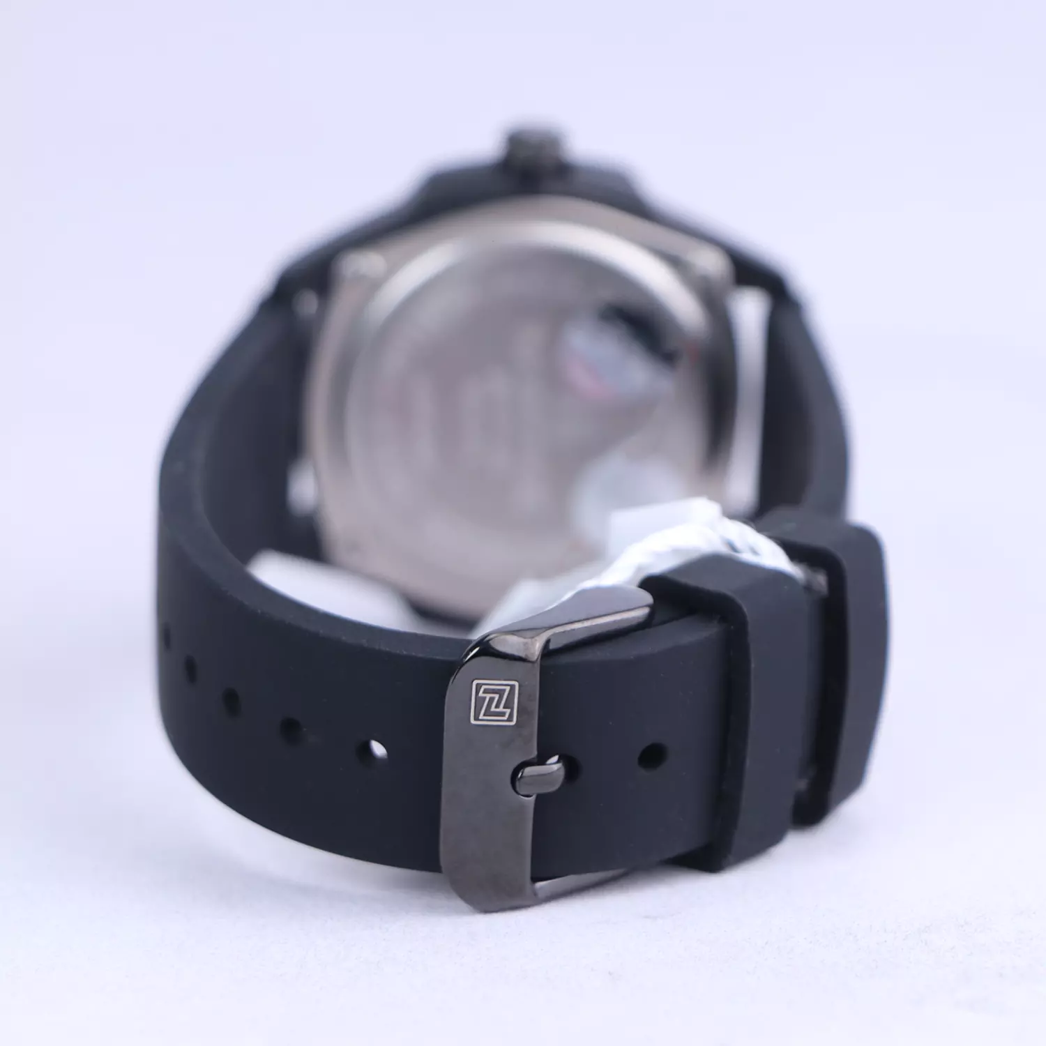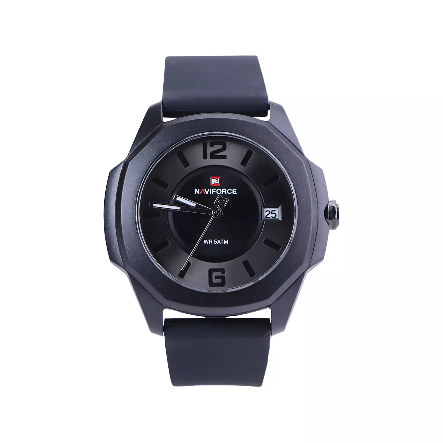 ساعت مچی نیوی فروس زنانه بند رابر مشکی ظاهری شیک و جذاب دارد. قاب این ساعت چندضلعی و از جنس فلز رنگ ثابت و ضدحساسیت است. اگر به صفحهی مشکی رنگ ساعت نگاه کنید، بخش مرکزی تیره رنگ است که لوگوی NAVIFORCE و WR 5ATM روی آن نوشته شده است. حلقهی بیرونی صفحه با رنگ روشنتر طراحی شده که باعث خوانایی بالاتر اندکس ها و نشانگرها میشود. اعداد 6 و 12 به صورت عددی و درشت کار شدهاند تا جهتیابی زمان سریعتر باشد، درحالی که باقی اندکسها به صورت خطی هستند. عقربههای شبنما به شما این امکان را میدهد که در شب و محیطهای کم نور هم گذر زمان را ببینید. یک مربع کوچک کنار عدد 3 قرار دارد که تقویم ساعت است. در کنار صفحه یک پیچ کوک برای تنظیم زمان و تقویم وجود دارد. بند ساعت رابر مشکی، مرغوب و ضد حساسیت است. این بند باعث تعرق و خارش نمیشود و قفل آن از مدل کمربندی (سگکی) است که از دسته قفلهای محکم و مطمئن بشمار میرود.