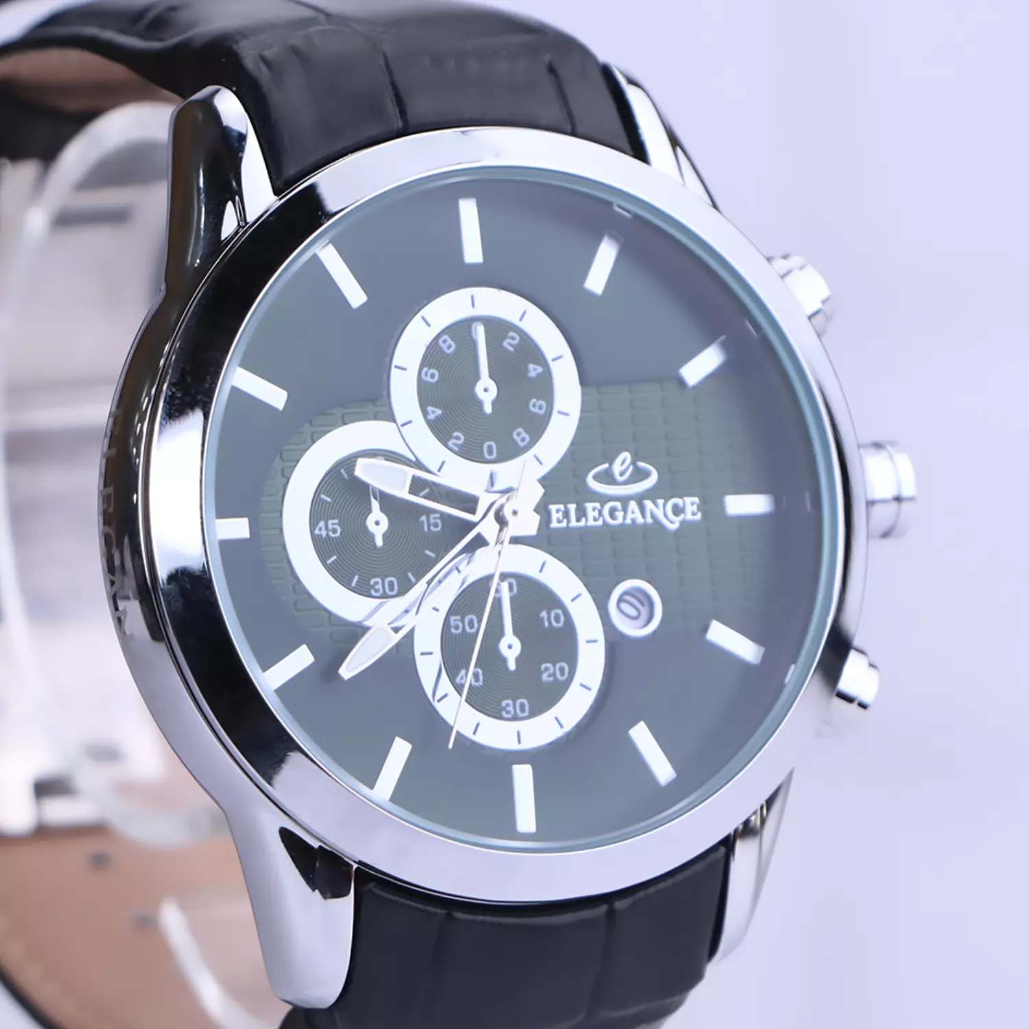 بهترین قیمت ساعت الگانس مردانه بند چرم مشکی