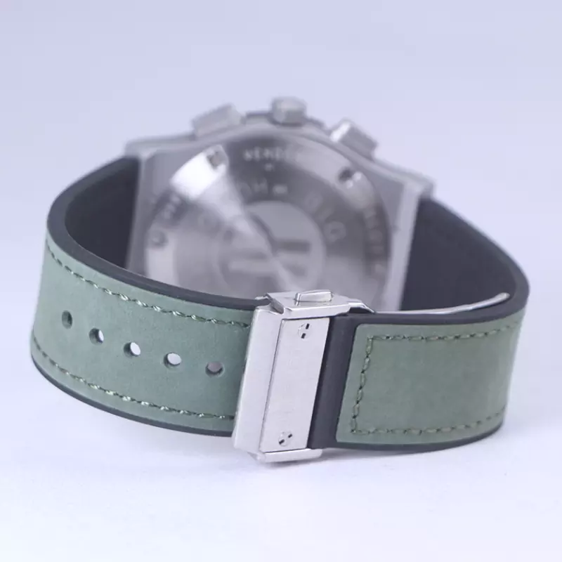 نمای باز ساعت مچی هابلوت مردانه بند جیر تمام سبز کرنوگراف G 888/182
