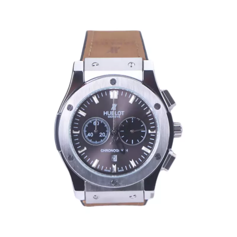 ساعت مچی هابلوت مردانه بند جیر قاب نقره ای کرنوگراف
