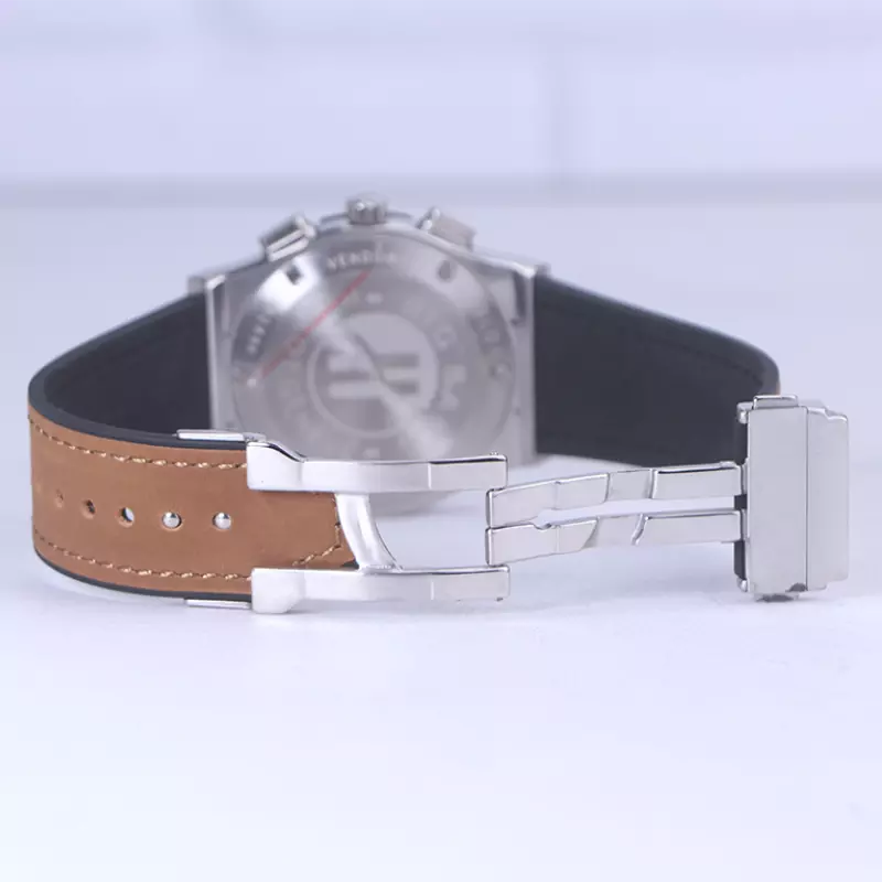 علاوه بر ویژگیهای ظاهری اگر به داخل ساعت نگاه کنید، یک صفحه دودی ساده مشاهده میکنید. در این ساعت دو صفحه دایرهی کوچک برای کرنوگراف و دقیقه شمار قرار گرفته است. دایرههای موجود در صفحهی ساعت شما هر کدام نشان دهندهی پارامتری خاص هستند. صفحه سمت چپی برای نشان دادن دقیقه و کرنوگراف است و دایره سمت راستی زمان را به صورت 24 ساعته نشان میدهد. اگر از افرادی هستید که امور خود را بر اساس تایم 24 ساعته تنظیم میکنید این صفحه کوچک به کار شما میآید. یک مربع کوچک بالای عدد 6 وجود دارد که نشان دهندهی تقویم ساعت است. قاب ساعت به شکل دایره است که دور تا دور آن با پیچهایی تزئین شده است. داشتن اندکسهای خطی نقرهای و عقربههای براق به شما این امکان را میدهد که در شب و محیطهای کم نور هم گذر زمان را ببینید. بند ساعت از جنس جیر مرغوب است که این بند دولایه میباشد. لایهی زیری، رابر و لایهی رویی از جنس جیر قهوهای میباشد و از تعرق و خارش جلوگیری میکند. اگر به درون صفحه دقت کنید، نام برند hublot زیر ساعت 12 دیده میشود. در کنار صفحه سه پین کوک برای تنظیم زمان و کرنوگراف وجود دارد. قفل آن از مدل کلیپسی است که از دسته قفلهای محکم و مطمئن بشمار میرود.