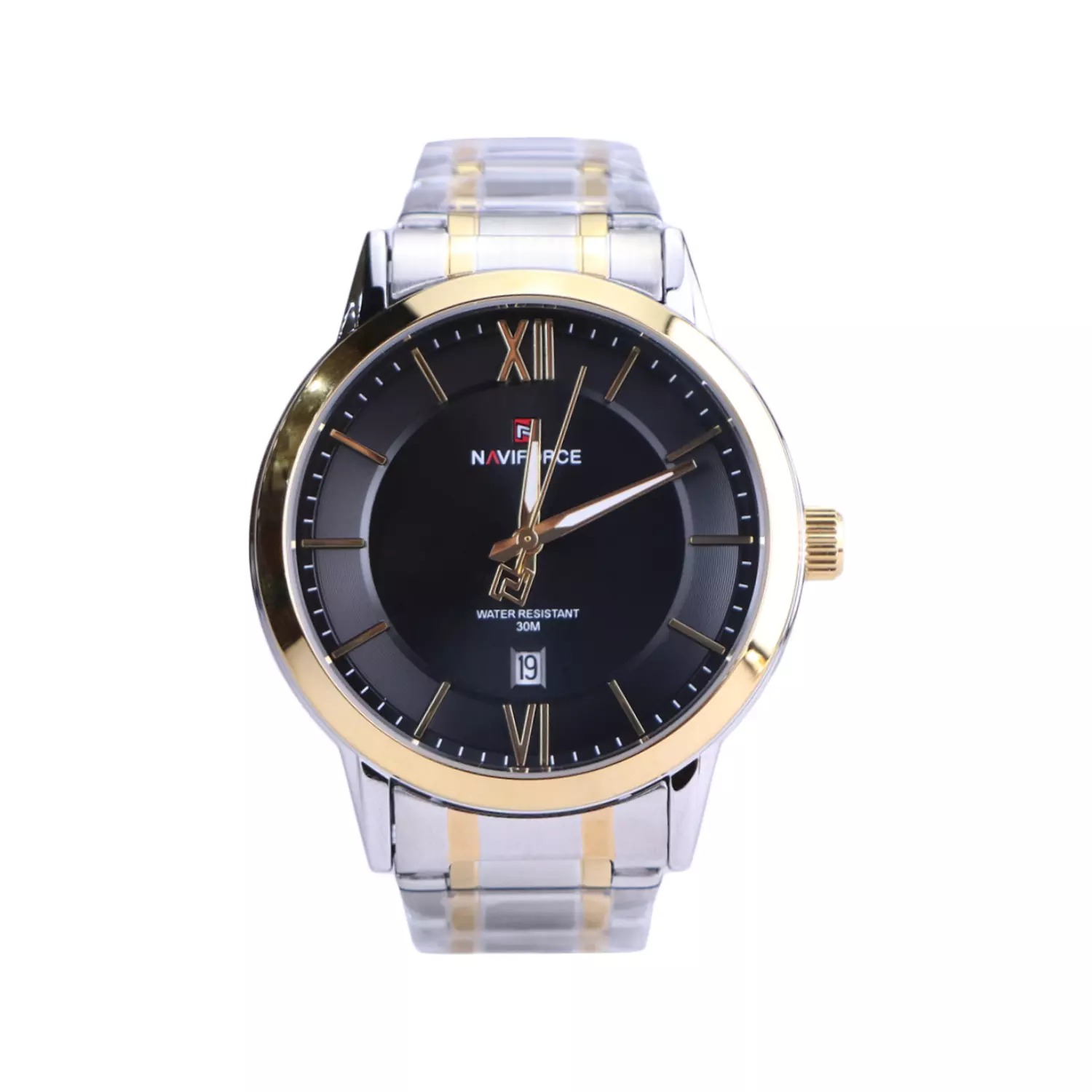ساعت نیوی فورس مردانه فلزی نقره ای طلایی صفحه مشکی NF 9254/4