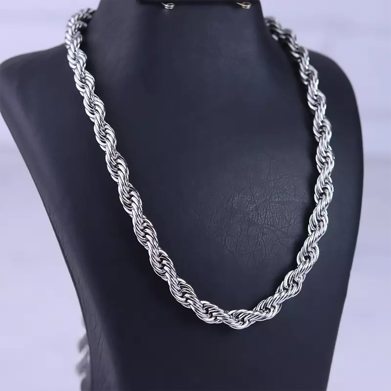 ست زنجیر و دستبند نقرهای طنابی استنلس استیل رنگ ثابت و ضد حساسیت است. این زنجیر از مدلهای شیک و جذاب زنجیر استنلس استیل است که هم مورد علاقه آقایان است و هم گاهی توسط خانمهای خاص پسند مورد استفاده قرار میگیرد. زنجیر طنابی نه تنها یکی از محبوب ترین انواع زنجیر است، بلکه یکی از بادوام ترین انواع زنجیر نیز می باشد. رنگ نقرهای این ست، ثابت است و در اثر استفاده روزانه زیبایی خود را از دست نمیدهد. قفل زنجیر مردانه از مدل خرچنگی است و هم محکم و مطمئن است و هم به راحتی بسته میشود.