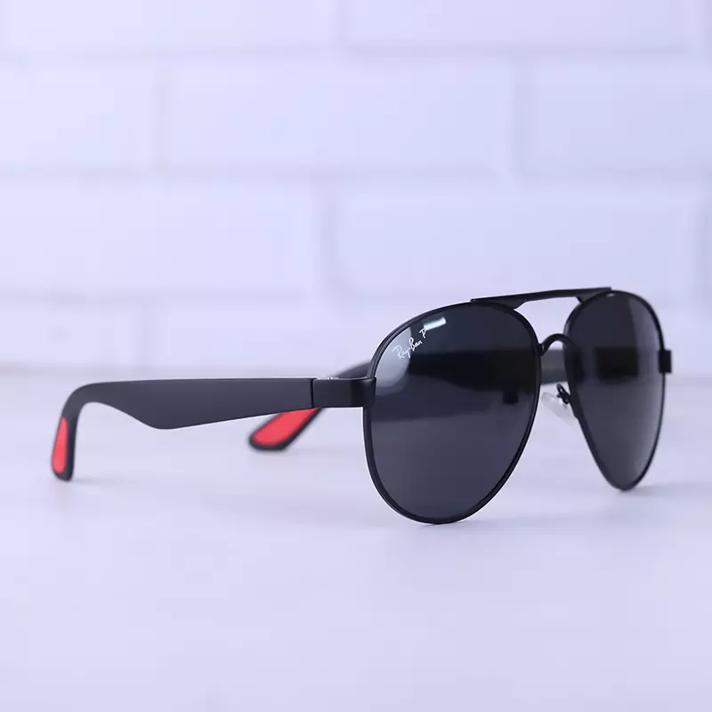 فریم این عینک که مهمترین قسمت آن است از نوع تمام فریم و به شکل خلبانی است. این مدل فریم تقریبا به تمام صورتها میآید و از طرفداران پروپاقرص این مدل عینک هستند. عرض عینک آفتابی ری بن حدود 13.3 سانتیمتر است. پل عینک، فلزی و بینی گیر آن لاستیکی، نرم و منعطف است. عرض پل 1.3 سانت است و به خوبی روی بینی مینشیند. رنگ عدسی مشکی است و عرض آن حدود 6 سانت است و چشم را کامل میپوشاند و در وسعت دید اشکالی به وجود نمیآورد. دسته عینک به رنگ مشکی و طول دسته حدود 13.5 سانتیمتر و انتهای آن قرمز رنگ است. سبکی این عینک کمک میکند تا ساعتهای طولانی عینک را به چشم بزنید و ابدا در قسمت گوشها یا بینی احساس سنگینی و خستگی نکنید.