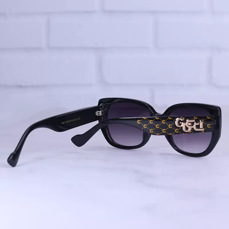 عینک آفتابی گوچی زنانه فریم پروانه ای مشکی 6011/1 از نظر قیمت در حد متوسط و از نظر کیفیت از بهترین نمونه های عینک “های کپی” است. بدنه عینک از کائوچوی مشکی ساخته شده که وزن متوسط و مقاومت بالایی دارد. عدسی آن، از نوع پلی کربنات است که به علت ضدخش بودن، برای عینکهای پرکاربرد بسیار مناسب است. سبک بودن جنس فریم و داشتن انعطاف نسبی از دلایل محبوبیت این عینکهاست. عدسی این عینک از نوع یو وی 400 است که از چشم در برابر اشعه خورشید به خوبی مراقبت میکند.