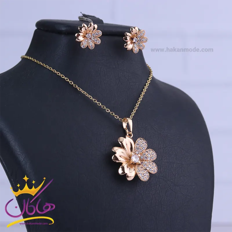 نیم ست استیل زنانه طلایی طرح گل | XP 46483