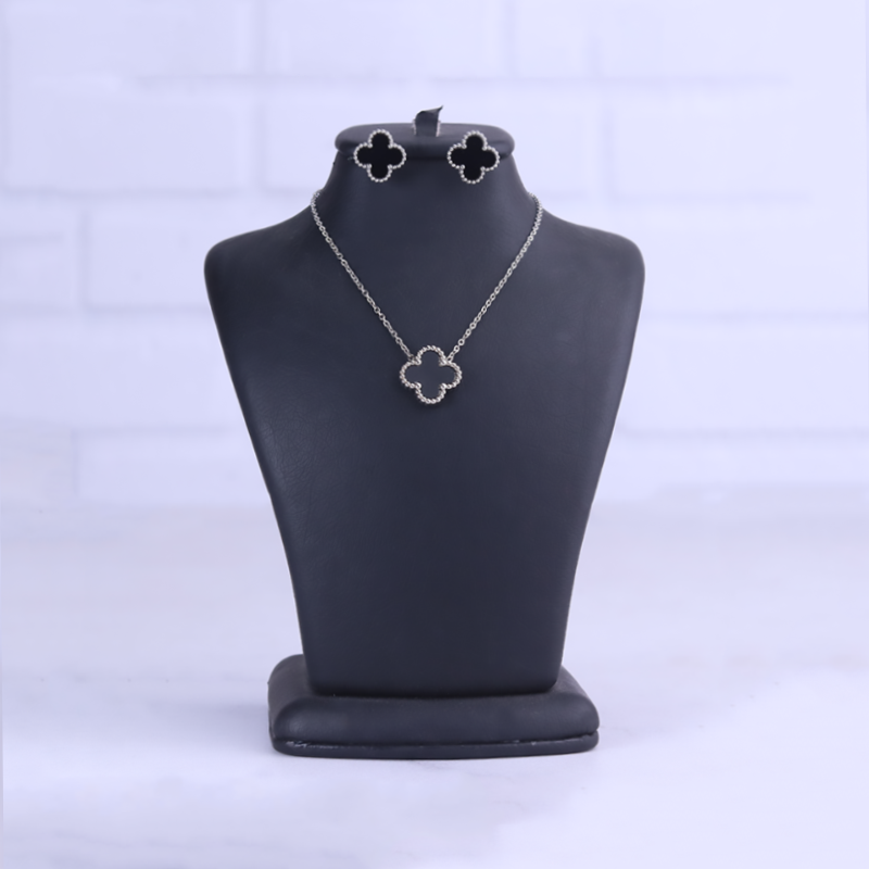 نیم ست استیل نقره ای ونکلیف ظاهری شیک و دخترانه دارد. این نیم‌ست نقره‌ای جذاب از یک جفت گوشواره و گردنبند تشکیل شده است. آویز این نیم‌ست طرحی شبیه به گل شبدر چهارپر که نشان ونکلیف است تشکیل شده است. گوشواره‌ها، مدل میخی بوده و طرح آن شبیه به آویز گردنبند است. اگر به دنبال خرید بدلیجات رنگ ثابت و ضدحساسیت هستید، نیم ست استیل زنانه طرح گل شبدر، گزینه مناسبی است، چرا که از مرغوب‌ترین نوع استیل موجود در بازار است. خرید زیورآلات زنانه هم برای نوجوانان و هم خانم‌های میانسال بسیار جذاب است. این نیم ست از برند استنلس استیل است. قیمت نیم ست استیل زنانه بر اساس کیفیت و اعتبار برند آن تعیین می‌شود. هاکان مد در تلاش است که بهترین کیفیت را با کمترین قیمت همراه کند تا رضایت همیشگی مشتریان خود را داشته باشد. برای خرید عمده نیم ست استیل با پشتیبانی هاکان تماس بگیرید تا از تخفیفات ویژه فروش عمده بهره‌مند شوید.