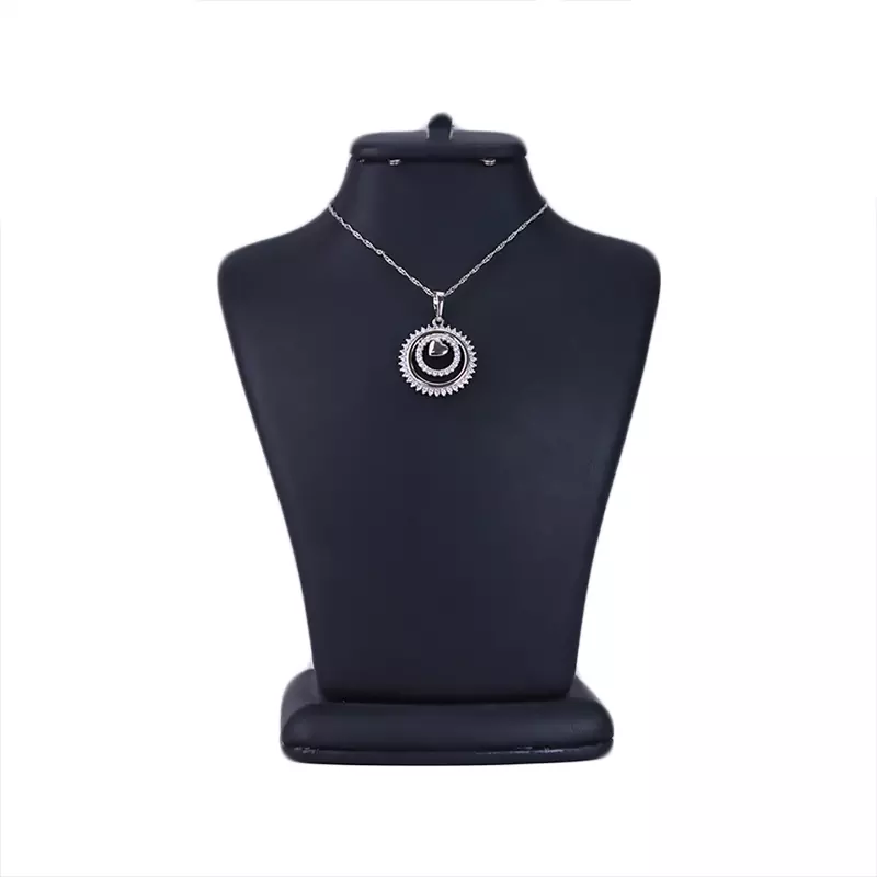 نمای نزدیک گردنبند استیل زنانه طرح دایره نگین دار