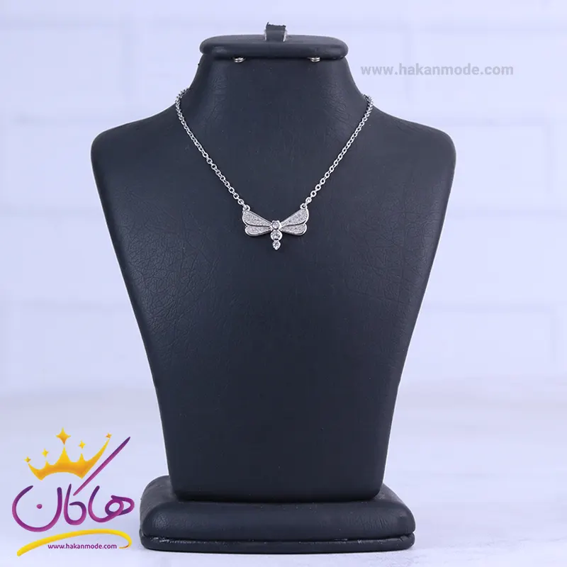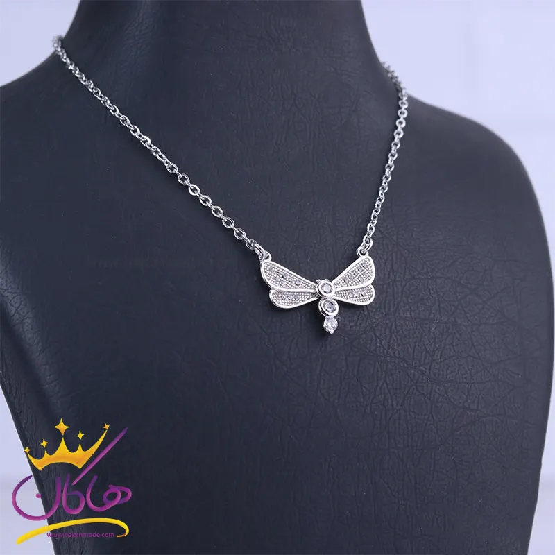 خرید گردنبند زنانه استیل نقره ای پروانه نگین دار با بهترین قیمت
